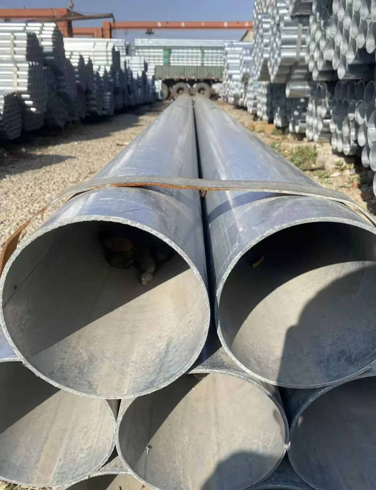 Sa mga tuntunin ng pagpili ng materyal, ang mataas na kalidad na SAW Welded Pipe tulad ng Q235B/Q345B/X70 ay ginagamit. Ginagamit ang advanced double-sided submerged arc welding at hot-dip galvanizing anti-corrosion na proseso. Ang proseso ng produksyon ay nagsasangkot ng tatlong proseso ng passivation upang mapabuti ang paglaban ng galvanized na produkto sa alkali corrosion, na nagreresulta sa mga siksik at mataas na lakas na welds. Ang bawat tapos na produkto ay pinatuyo, siniyasat, at maayos na kinukumpuni bago ang packaging at pagpapadala. Ang isang malawak na hanay ng mga pagtutukoy ay magagamit, na may 236 mga pagtutukoy na ginawa. Sinusuportahan din ang pagpapasadya ng malalaking diameter, makapal na pader na tubo.